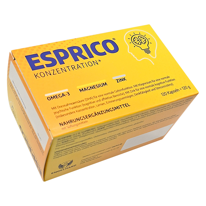 Esprico представляет собой комбинированный продукт, в котором соединены полиненасыщенные жирные кислоты и минералы, участвующие в работе нервной системы и когнитивных функций. Производитель подчеркивает роль ДГК в поддержании нормальной функции головного мозга, магния — в нормальной психической функции, а цинка — в нормальной когнитивной функции.