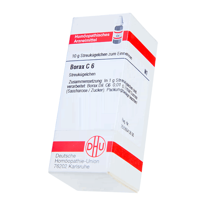 Боракс С6 – это гомеопатическое средство, выпускаемое в виде гранул для разведения. Активным веществом является Натриум тетраборацикум. Медпрепарат помогает против беспокойства, раздражительности, дрожания рук и ног, а также против гиперчувствительности к звукам, которые многие пациенты назвали бы «ужасающими». Боракс также обеспечивает регенерацию кожи.