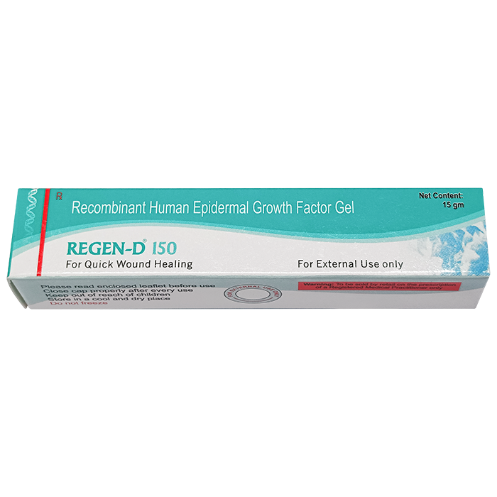 Regen-D — гель, содержащий рекомбинантный человеческий эпидермальный фактор роста (rhEGF) в концентрации 150 мкг/г. Предназначен для местного применения на раневую поверхность и используется как средство, которое назначают для стимуляции репаративных процессов при трудно заживающих язвенных дефектах кожи.