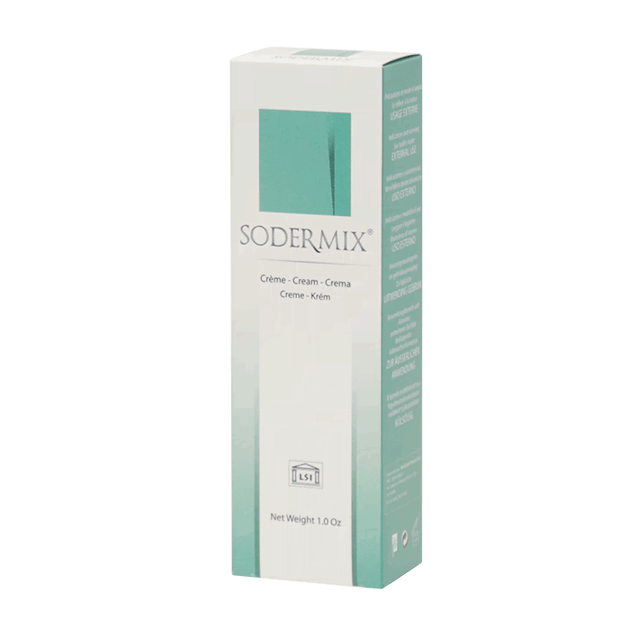 Особые указания. Крем Содермикс наносят только на чистую и сухую кожу (предварительно очистить кожу, например, с помощью мягкого мыла с водой и высушить). После того, как Sodermix крем нанесен на зону поражения, следует оставить его до полного впитывания. После этого можно пользоваться декоративной косметикой или другими косметическими средствами.