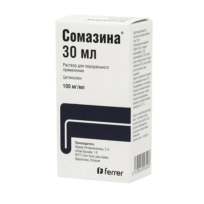 Применение и дозировка. Сомазина назначают при нарушениях кровообращения мозга в результате черепно-мозговых травм и неврологических осложнениях, инсульте, церебральных и других сосудистых патологиях, которые провоцируют снижение памяти, умственных способностей и другое. Сомазина сироп принимают по 200 мг трижды в день с помощью специального дозирующего шприца.