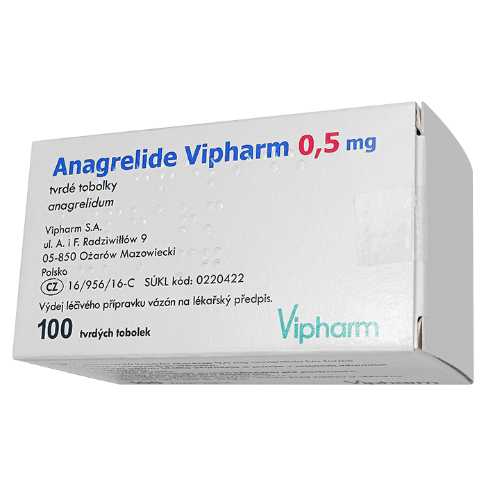 1 капсула содержит анагрелида 0,5 мг в форме анагрелида гидрохлорида моногидрата.