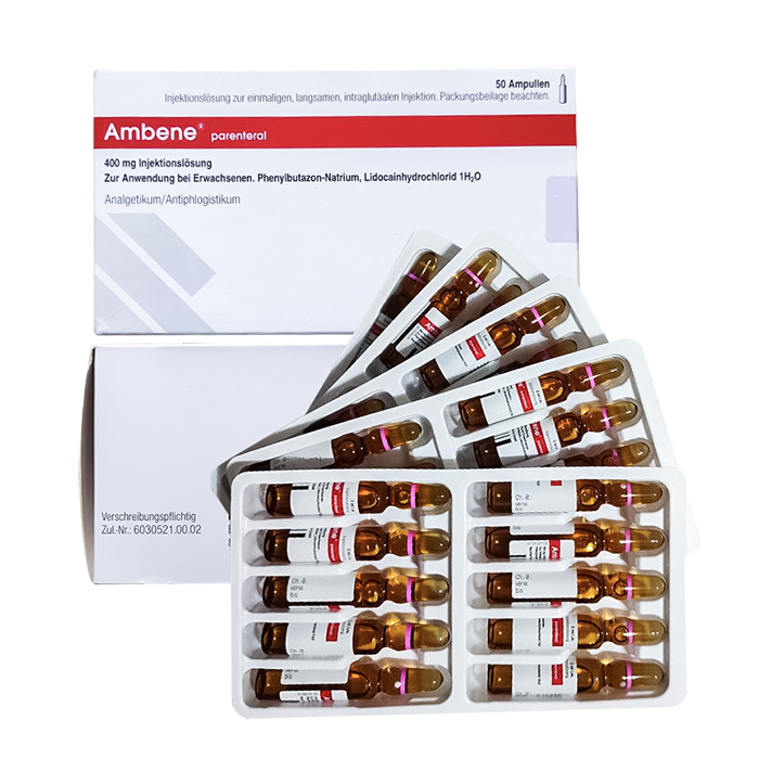 Ambene® parenteral ампула с 2 ml раствора для введения содержит 400 мг фенилбутазон-натрия.