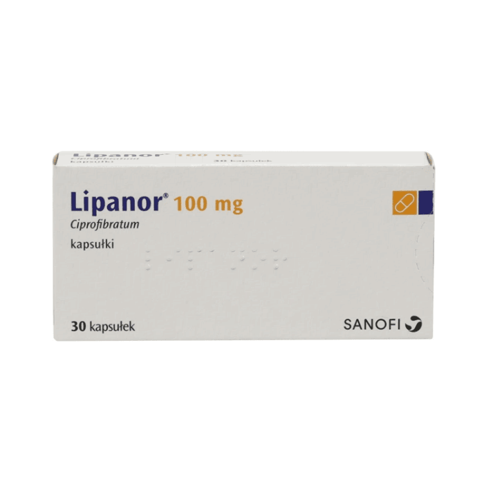 Липанор - это препарат, снижающий уровень холестерина и триглицеридов в крови. Активное вещество ципрофибрат подавляет биосинтез холестерина в печени и, таким образом, снижает концентрацию холестерина ЛПОНП и ЛПНП. Он также отвечает за увеличение производства холестерина ЛПВП. Дополнительно препарат обладает антиагрегантными и фибринолитическими свойствами.