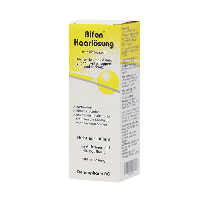 Лосьон для волос и кожи головы Бифон содержит бифоназол — высокоэффективное противогрибковое средство, уничтожающее Pityrosporum ovale — причину образования перхоти.