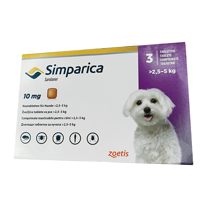 Симпарика таблетки для пер. пр. для собак 10мг 2,5-5кг ГЕРМАНИЯ! N3