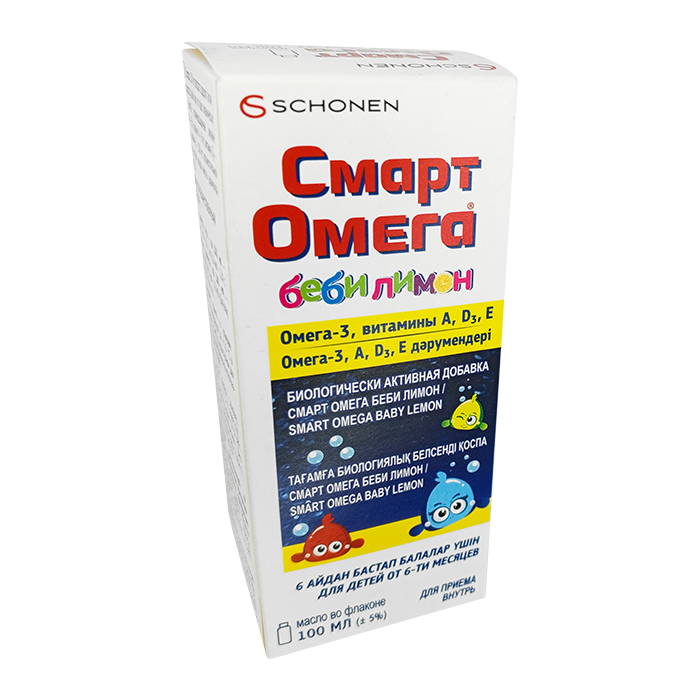 Смарт Омега беби лимон может быть рекомендована для использования в качестве диетической добавки к рациону питания как дополнительный источник незаменимых омега-3-ПНЖК (ЭПК/ДГК) и жирорастворимых витаминов А, D3 и Е с целью создания оптимальных диетологических условий функционирования когнитивной, нервной и костно-мышечной систем у детей в период интенсивного роста и развития. Омега-3-ПНЖК необходимы для правильного формирования и функционирования мозга, органа зрения и ЦНС. Они обеспечивают нормальное развитие сенсорных, моторных и поведенческих реакций. Омега-3-ПНЖК способствуют нормализации холестеринового и липидного обмена в целом, замедлению образования атеросклеротических бляшек и регуляции тонуса сосудов. Витамин D3 необходим для правильного развития костной системы, а также для профилактики рахита. Витамин Е проявляет антиоксидантную активность, защищает клетки и ткани от повреждающего действия чрезмерного количества свободных радикалов и продуктов ПОЛ.