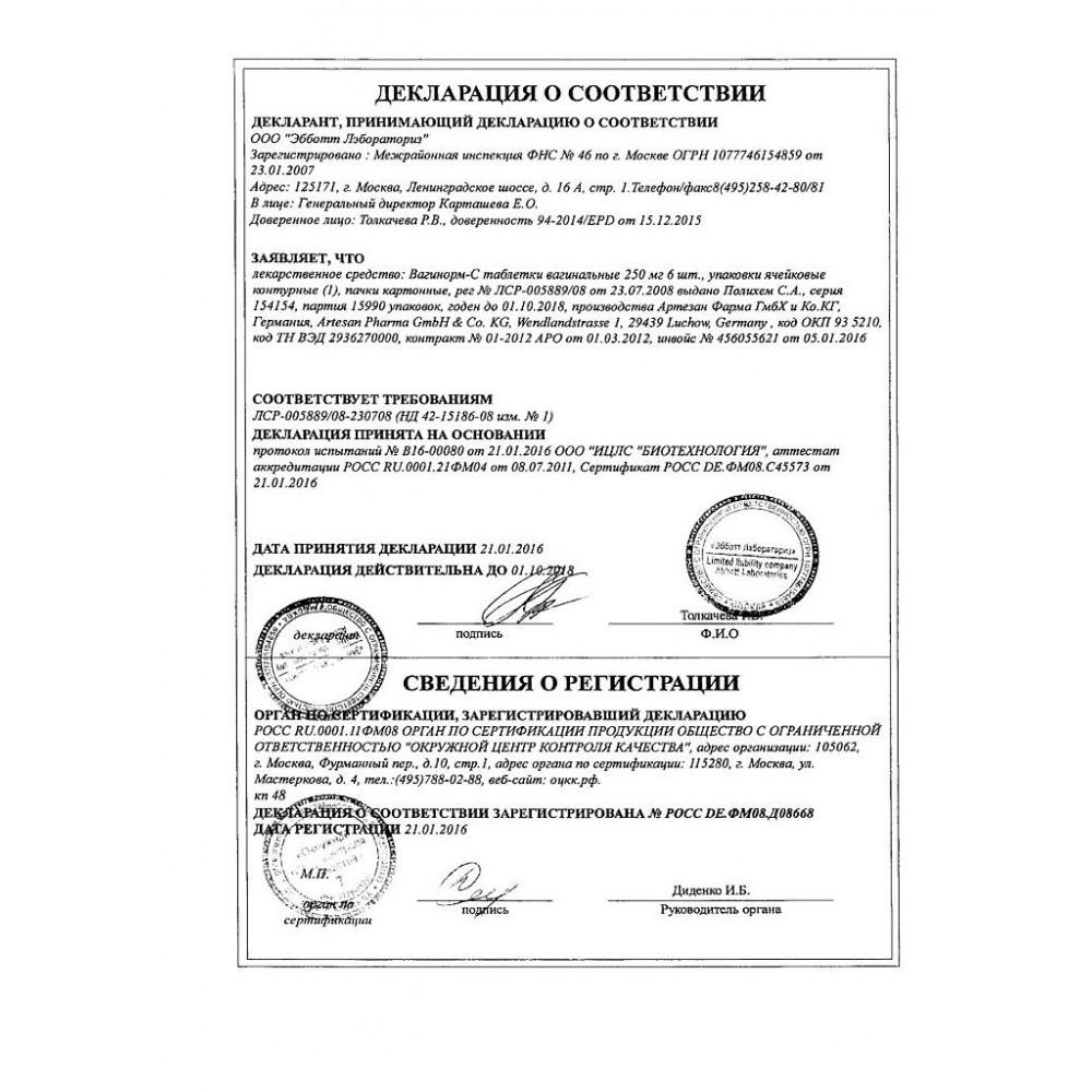 Применения. Вагинорм С вводится интравагинально. Рекомендуется вводить таблетку глубоко во влагалище 1 раз в сутки вечером. При легкой или средней тяжести нарушениях влагалищной флоры достаточно применять препарат в течение 6 суток. Длительное лечение на протяжении нескольких недель показаны при тяжелых нарушениях молочнокислой вагинальной флоры или при беременности.