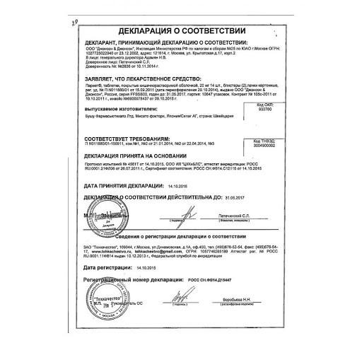 Вспомогательные вещества: магния оксид, маннитол, слабозамещенная гидроксипропилцеллюлоза, гидроксипропилцеллюлоза, этилцеллюлоза, магния стеарат, гипромеллозы фталат, тальк, диацетилированный моноглицерид, этанол, титана диоксид, очищенная вода, карнаубский воск, чернила 0пакод S-1-17740, железа оксид желтый.